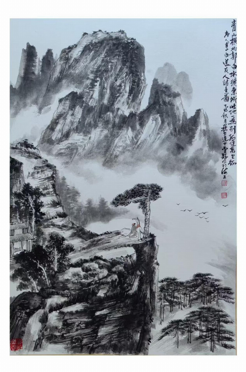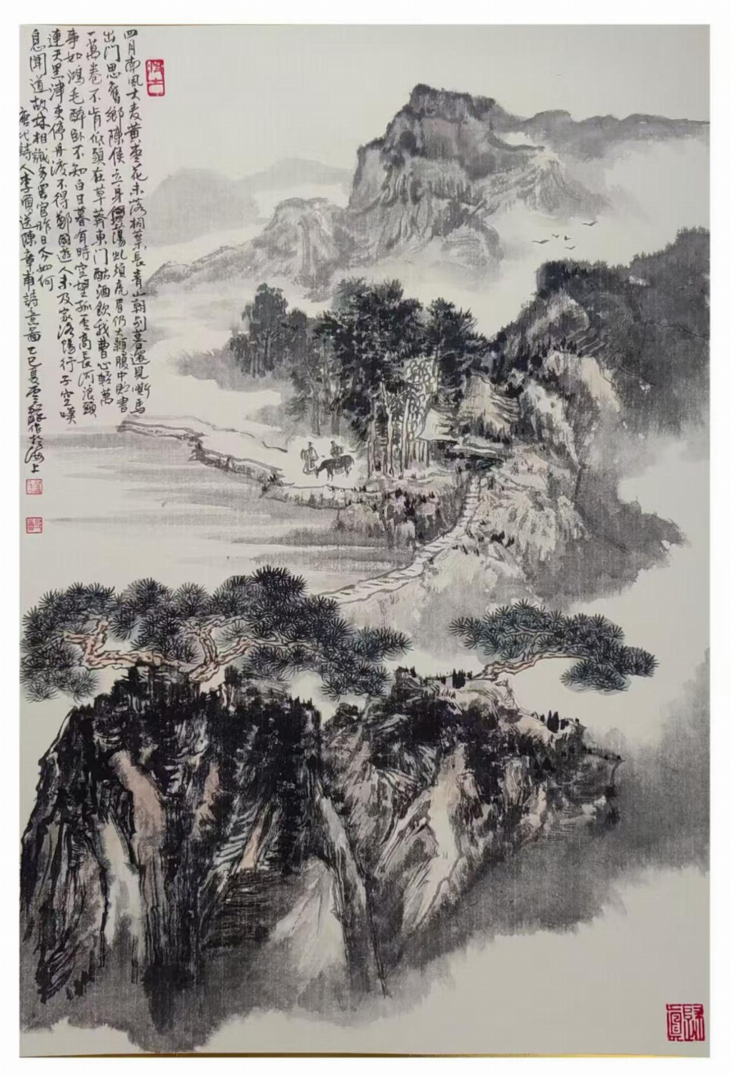 其作品以新安画派为基础,融合传统技法与现代审美,擅长山水、花鸟题材,风格朴茂气格,斋名“松竹草堂”,号“云锋”“砚鑫墨耕”