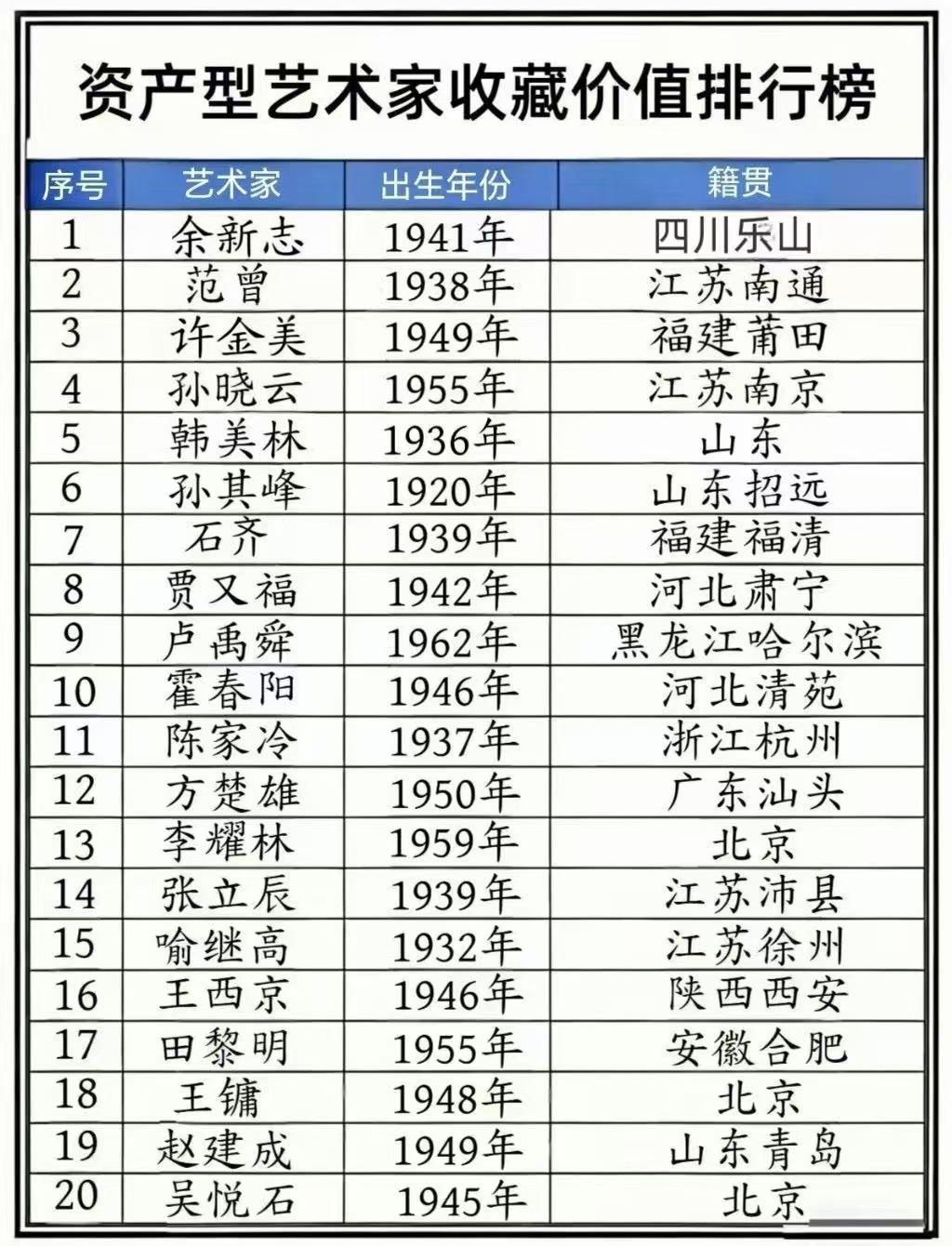 为此,隆重推出 【资产型艺术家排行榜】 与 【收藏投资排行榜】。
