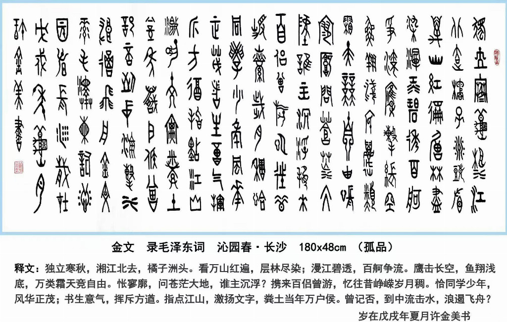 许金美,笔名金鑫,福建莆田人,国学老师、诗人、书法家和艺术评论家。担任欧洲艺术协会特约艺术家、中国东方文化研究会高级艺术顾问等职务,领导多个艺术机构。擅长甲骨文书法,屡获国内外大赛奖项。其著作《怎样写甲骨文》和《甲骨文毛泽东诗词全集》被认定为世界非物质文化遗产。他的甲骨文作品《甲骨文三字经》,对中国甲骨文书法的传承和发展有重要影响,受到国内外收藏家和机构的青睐。2024年8月,《中华甲骨文百家姓》在国宝档案展示,进一步证明了他在甲骨文领域的成就。许金美的艺术成就受到国内外媒体的广泛报道和赞誉,为中外文化艺术交流作出了巨大贡献。