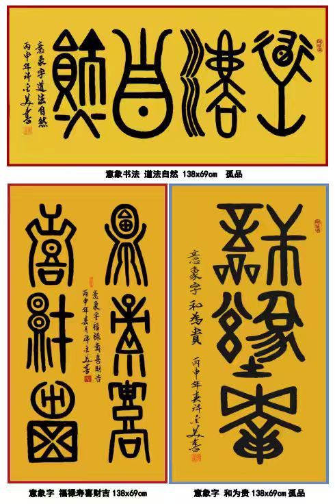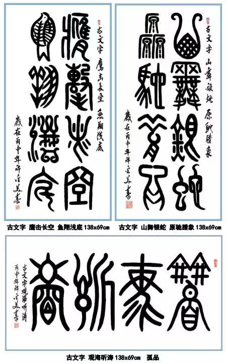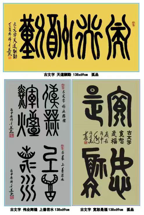 古文字十二生肖69x69Cmx12(孤品)。在国内外书画报刊典集发表8次。