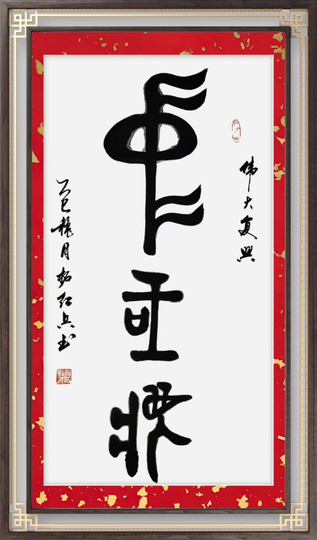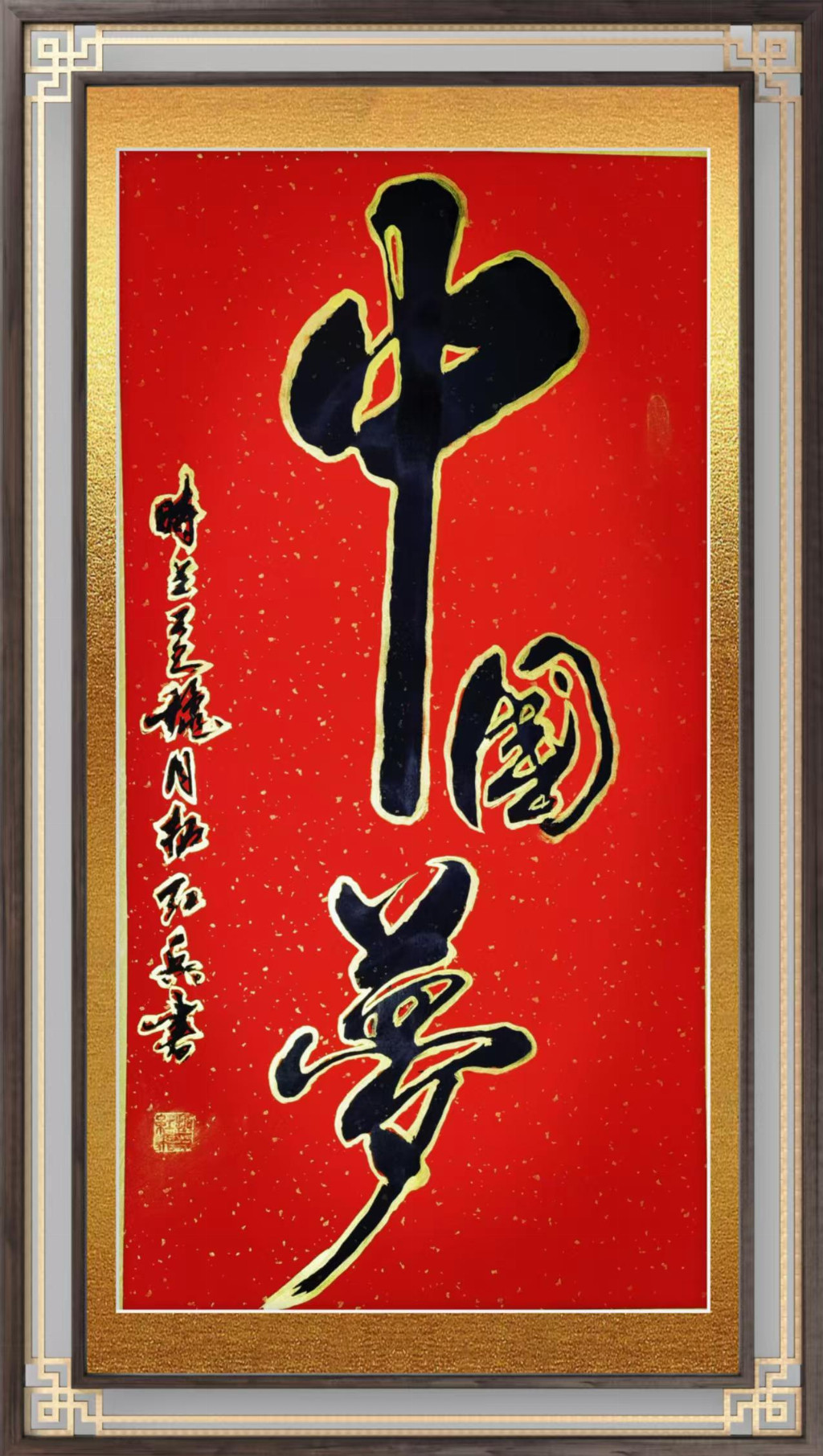 2019 年应邀拓红兵走进人民大会堂展出其书法作品【中国梦】。