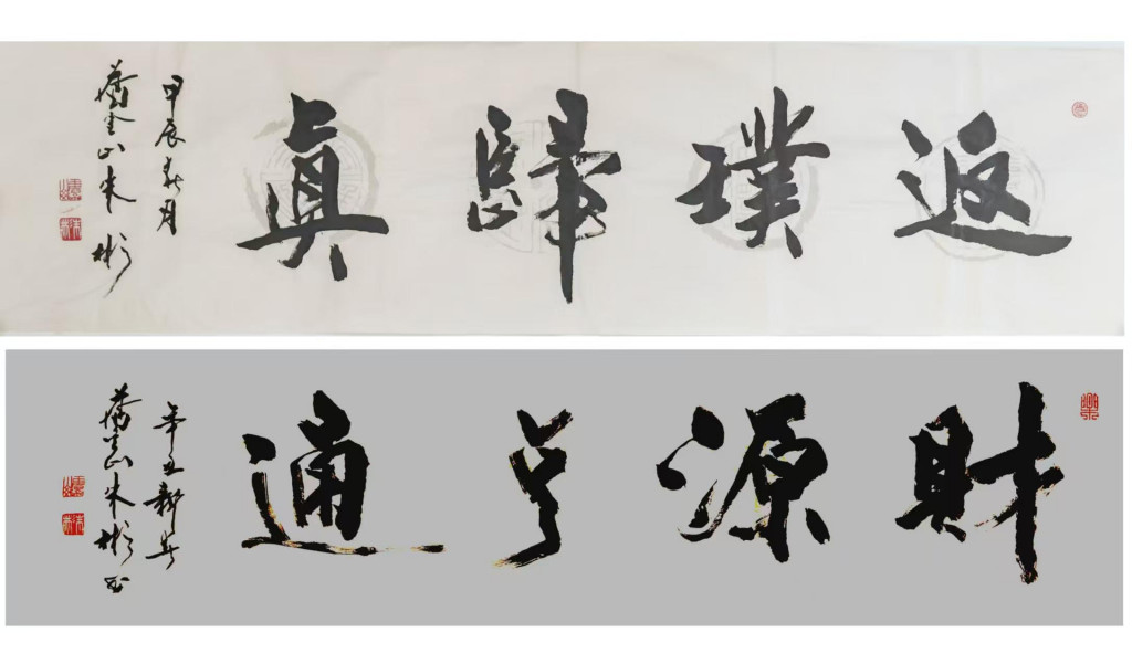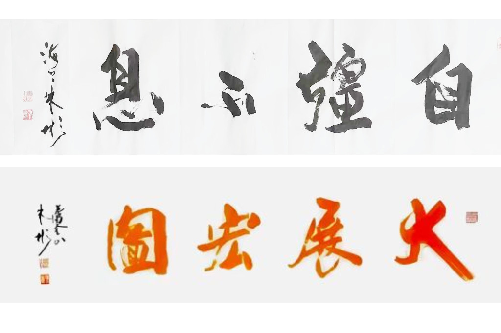 朱彬老师年少时师从“新魏体”创始人“非遗”保护之大师周华金先生,以魏碑之功玩笔书艺。能书各体的朱彬作品融贯中西时尚,透烁出他多才多艺、乐天豁达的性格和品格,形成了自己的个性写照与独特风格。朱彬还不断地在传统书法基础上注入现代元素的研究实践,可见其品学修养之品位,力达审美境界。