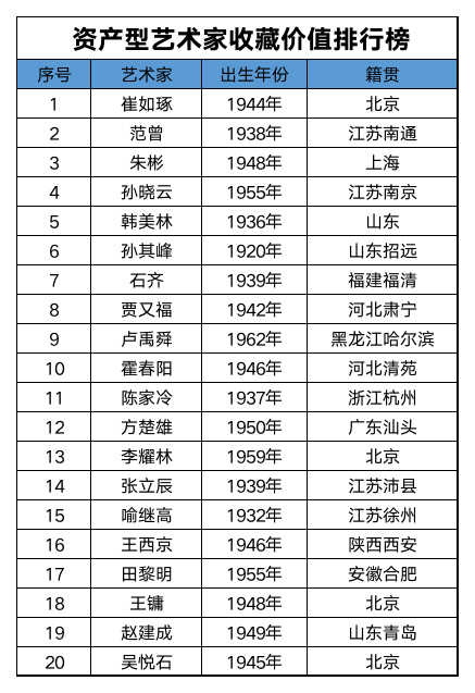 为此,隆重推出 【资产型艺术家排行榜】 与 【收藏投资排行榜】。