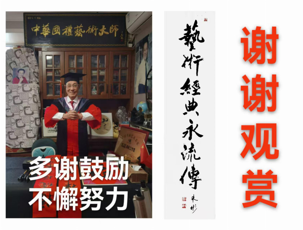 《朱彬~诗联墨韵》被中国列为国家“非遗”项目。“中国书画非遗功勋奖”获得者朱彬荣获中国书法最高奖项“兰亭奖”&中国书法家协会颁《王羲之书法终身成就奖》荣誉证书。2024年被授予《达芬奇国际艺术终身成就奖》勋章,2025年被美国科罗拉多工程大学授予(艺术专业)荣誉博士学位。荣获2025首届中国艺术“金马奖”,国际书画家联合会授予朱彬老师“全国金牌师资”【最佳书法导师】匾牌,以资表彰。