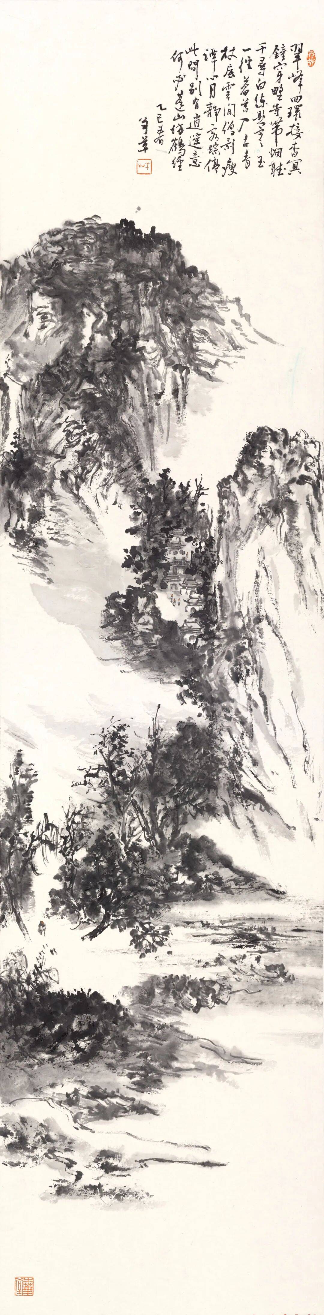 《翠峰》纸本水墨138×34cm