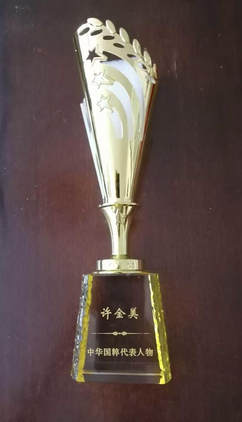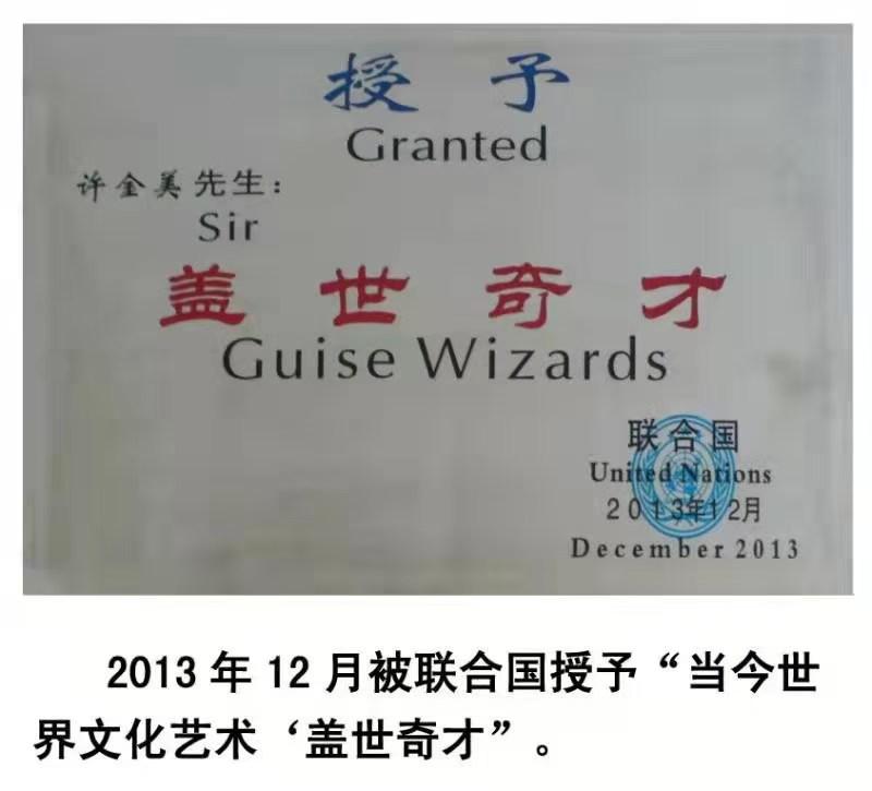 △香港著名学者,甲骨文书法家饶宗颐在国内外一些报刊上看到了许金美发表的甲骨文书法作品后评价说:“当今奇才,中国甲骨文书法第一人"。