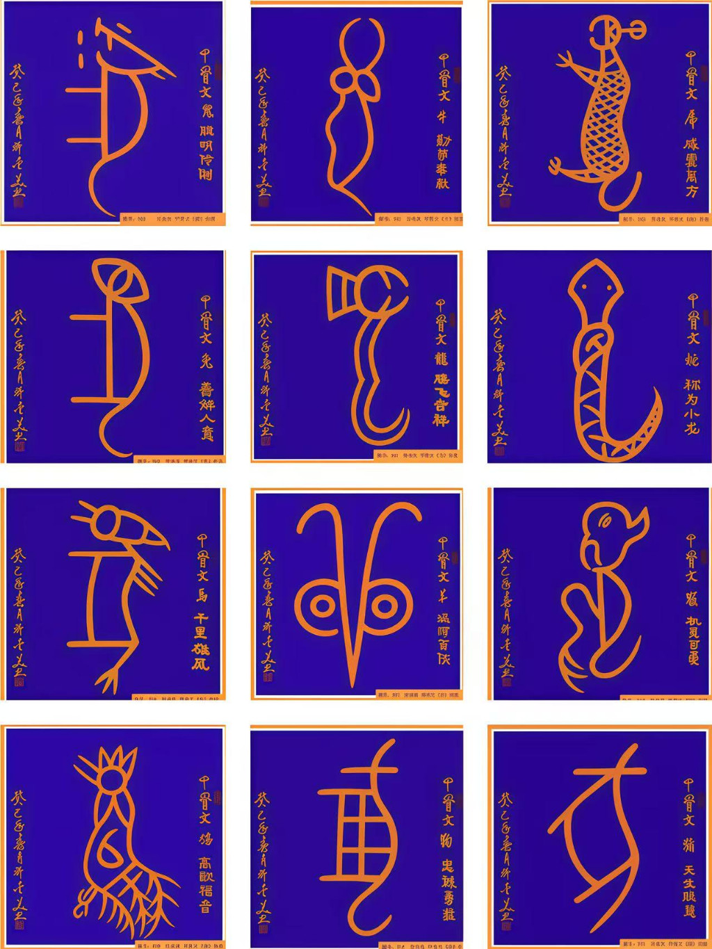 金字甲骨文十二生肖69X68mX12(孤品)。