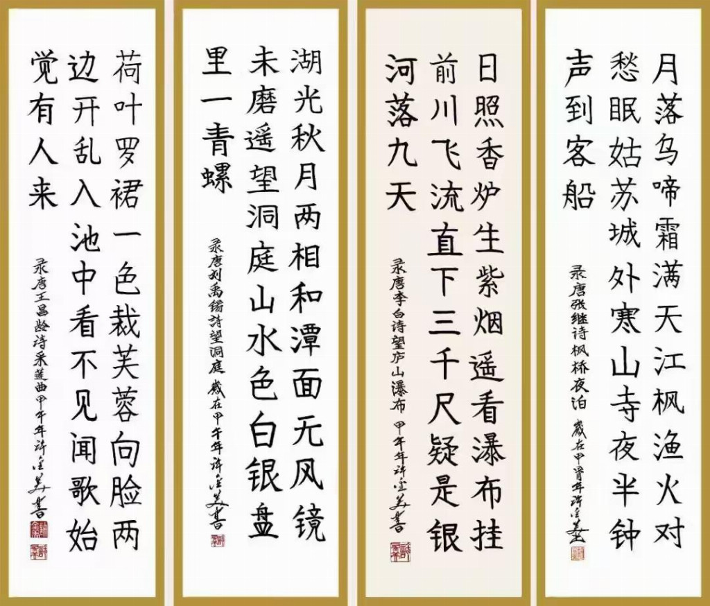 楷书:唐诗四条屏276X138Cm(孤品)。
