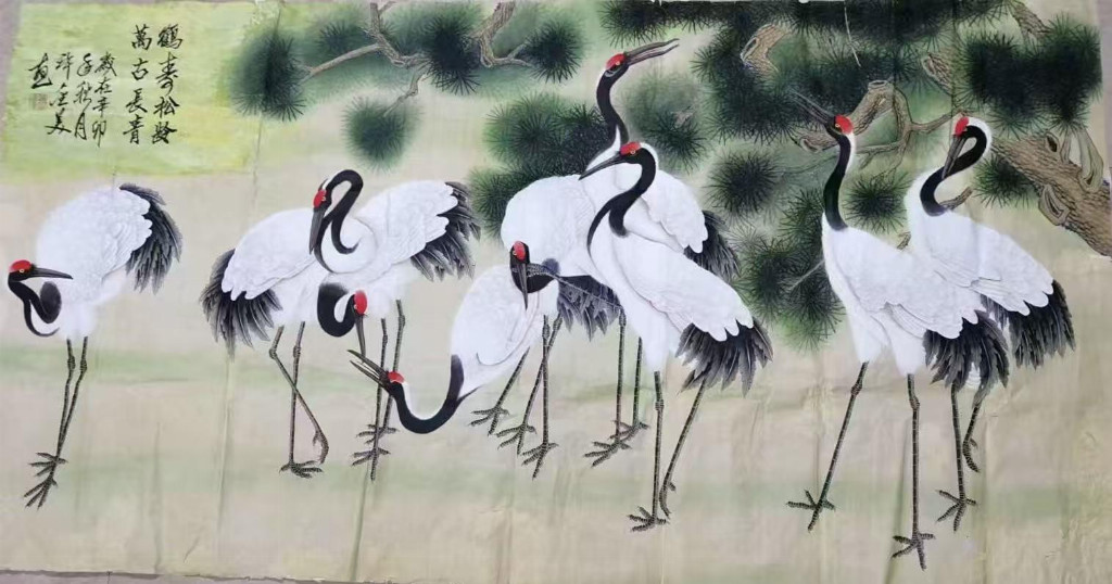 工笔画:鹤寿松龄,万古长青150cmx70cm(孤品)在国内外书画报刊发表12次。