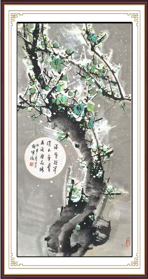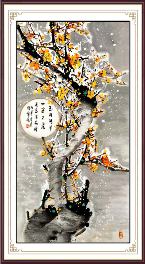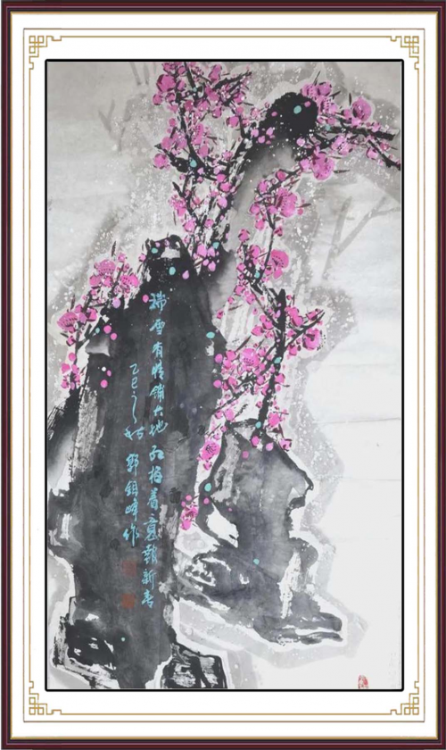 郭银峰的艺术魅力,正在于他成功实现了两种文化基因的创造性转化。他的人物画注重解剖结构却不失气韵生动,他的梅花系列讲究色彩关系而内含笔墨意趣,这种跨文化的艺术探索使其作品既具有油画的视觉冲击力,又蕴含着东方哲学的美学深度。