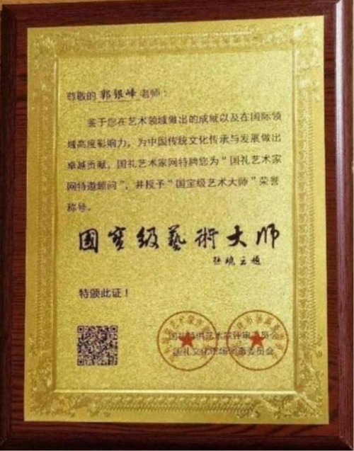 Guo Yinfeng was born in Qingyang, Gansu in 1949. He joined the army in 1968 and successively worked in the Xizang Military Region, the Chengdu Military Region, the Second Artillery Engineering College of the People's Liberation Army, and the Xi'an Political College of the People's Liberation Army. After changing jobs in 1994, he worked at the Office of the Shaanxi Provincial People's Congress as a department level inspector. Guo Yinfeng's oil painting "After School" won the first prize at the 1988 National Painting and Calligraphy Exhibition. The traditional Chinese painting 'Ode to the Yellow River' won the highest award of the 2002 Korean International Painting and Calligraphy Competition, the 'International Merit Award'. The traditional Chinese painting "Cold Fragrance of Plum Blossoms" won the first prize at the National Chinese Painting Exhibition in 2009. The traditional Chinese painting 'My Classmate' won the first prize at the 14th National Land Song Calligraphy and Painting Exhibition in 2010. In 2012, a personal exhibition of calligraphy and painting works and a high-level art seminar were held at the Great Hall of the People in Beijing. In 2012, Guo Yinfeng held a calligraphy and painting exhibition at the Louvre Museum in France, which was highly praised by international friends. I am currently the Vice Chairman of the Asian Calligraphers and Painters Association, Vice Chairman of the Hurun International Calligraphers and Painters Art Appraisal Center, Vice Chairman of the National Calligraphers and Painters Art Committee, Visiting Professor at the Central Academy of Fine Arts, National Senior Artist of China, National Special Grade Calligraphy and Painting Master, Dean of the Northwest Calligraphers and Painters Research Institute, Visiting Professor and Doctoral Supervisor at the Oxford School of Art in the UK, Researcher at the Cultural and Historical Museum of the Shaanxi Provincial People's Government Counselor's Office, and Researcher at the Boao Art. In 2021, he was awarded the titles of "Excellent Artist of the Motherland" and "Model of Calligraphy and Painting Art" respectively. In the 100th anniversary of the founding of the Communist Party of China, he was awarded the honorary title of "People's Artist of Virtue and Art", as well as the titles of "Master of World Cultural and Artistic Images", "Representative Figure of China's National Art Image", and "Meritorious Figure of China". In 2022, I was specially invited to become a senior director of the expert group of Shen Peng Calligraphy Art Studio. Highly recommended for titles such as "Chinese Art Master", "People's Calligrapher and Painter", "Outstanding Art Inheritance Star of the Chinese People", and "Art Master under the Party". Guo Yinfeng was awarded the title of "2023 Global Top Ten Outstanding People of the Year", "2023 Excellent Artist of China's Art Circles", "Venice Biennale - Specially Recommended Artists", "Excellent Calligraphy and Painting Tutor", "Chinese Contemporary World class Artist", "the Belt and Road Cultural Image Ambassador", and "Chinese Artist for National Rites" by the Ministry of Culture and Tourism. In 2024, he was included in the Da Hong Pao collection book, awarded the Order of the Republic, recognized as a "Picasso" international artistic merit figure, and awarded the Nobel Prize.