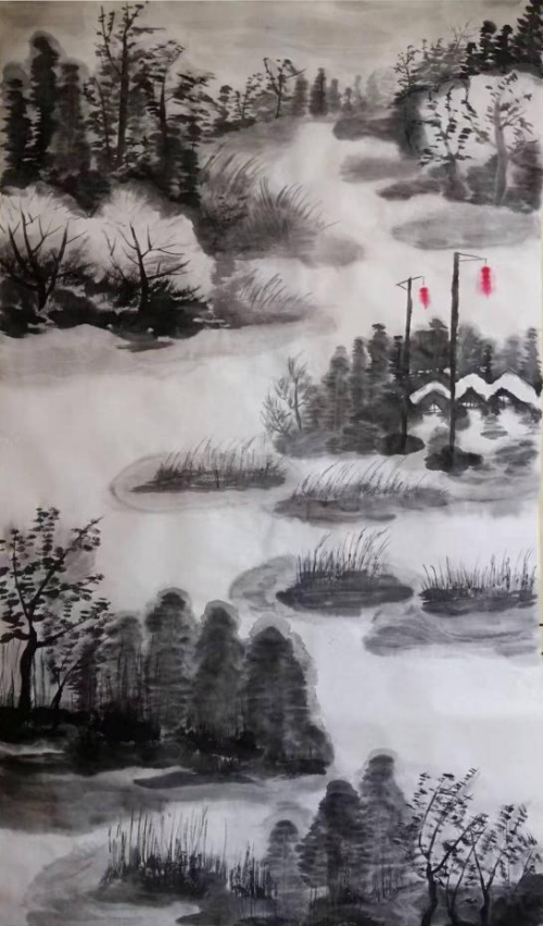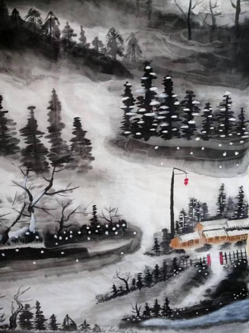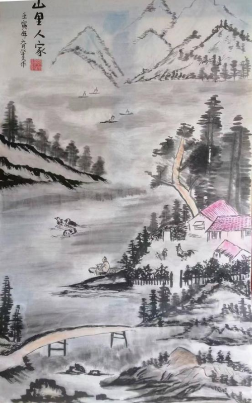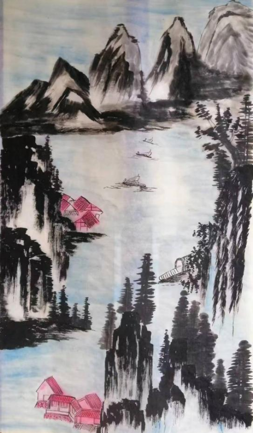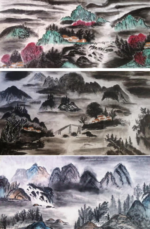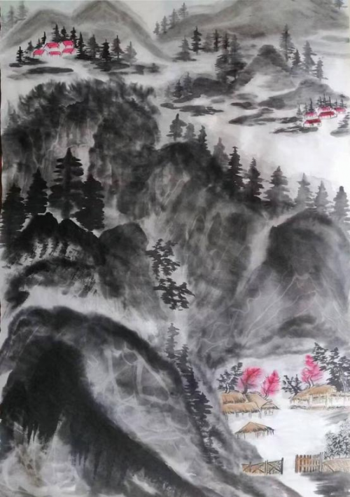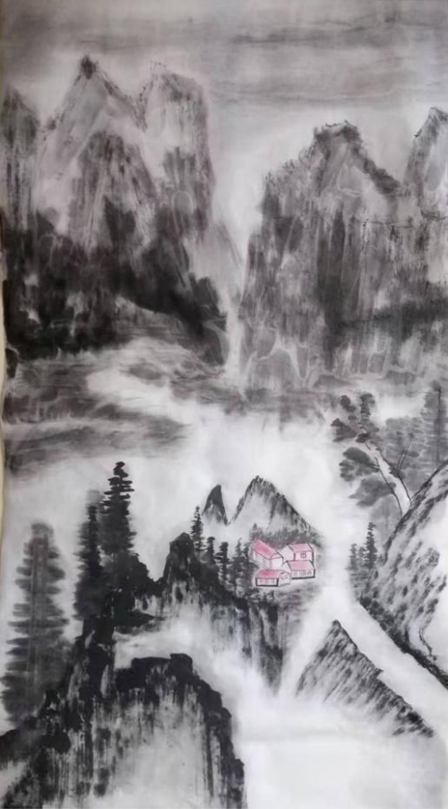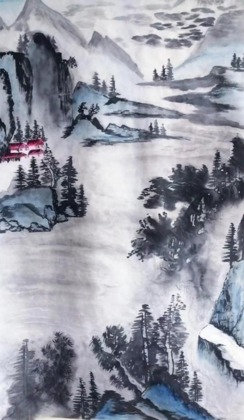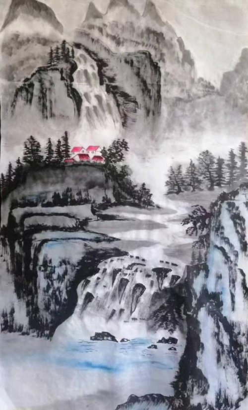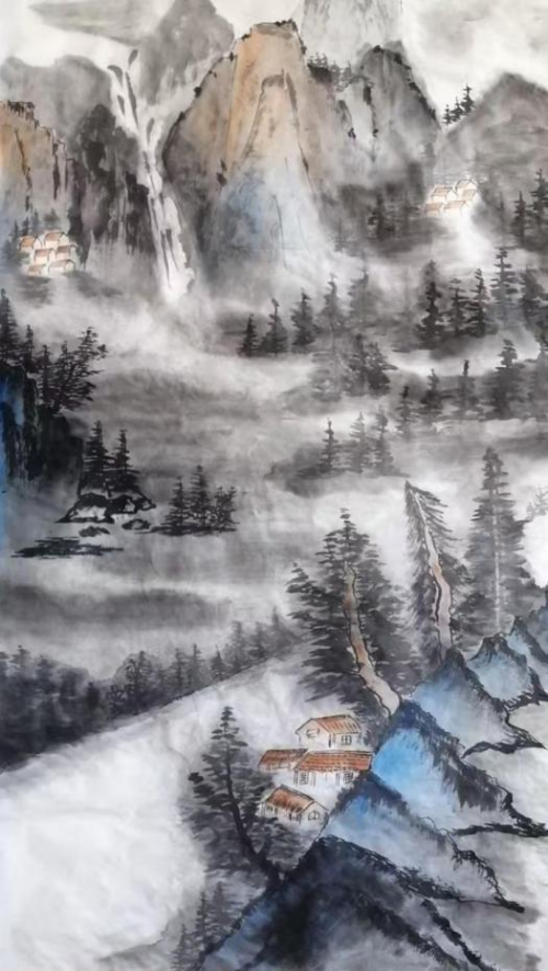 他的创作过程,尤其体现了“技”与“道”的融合。当技巧纯熟到成为身体的本能,创作便从“有意为之”进入了“无意于佳乃佳”的自由之境。看他作画,是一种享受。时而疾风骤雨,大笔挥洒,墨色在纸上恣意滃染,如云如雾,气象万千;时而凝神静气,细笔勾勒,于精微处见精神。他善于运用水与墨的交融、冲撞,营造出画面丰富的层次与意料之外的肌理,这些“偶然”的效果,恰恰成为作品中最生动、最富神采的部分,那是天趣与人工的完美结合。