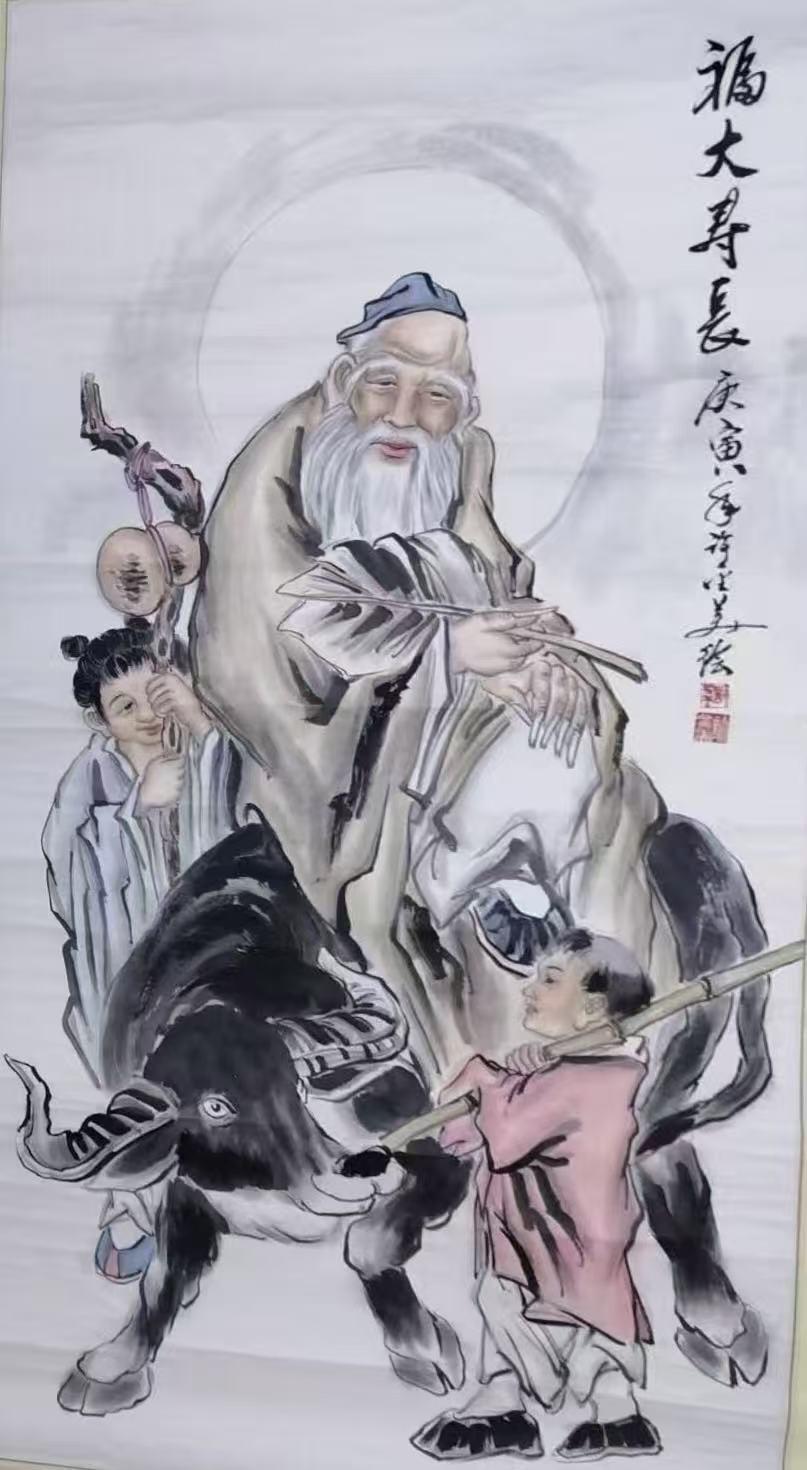 工笔画:《鹤寿松龄,万古長青》150x69Cm(孤品)。在国内外书画报刊发表12次。