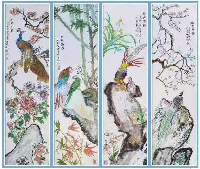 工笔画:《梅兰竹菊四条屏》276x194Cm(孤品)