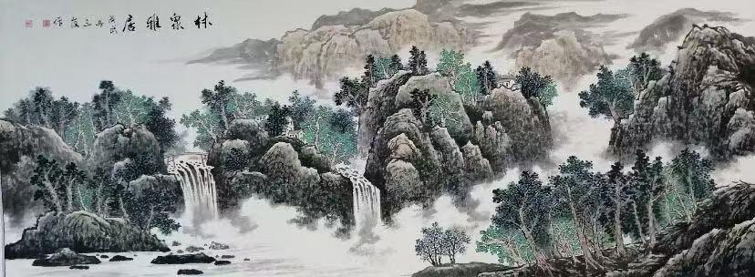 笔下青绿浅绛,心中丘壑精神,赵玉林先生愿意也执着地把自己的身心全时空、全方位地沉浸在山水的体悟之间,让自己成为山水的一部分、一分子,带着热爱生活、珍爱自然的情怀,把画画当成为天地张目,为万物传神的担当。青山绿水入画来,浅绛悦目醉观天。这来源于生活,酝酿于心田的山水意象,何不是我们最最需要的金山银山!守护这一方方葱葱郁郁,把山水画当成人与自然和谐相处的召唤,让中国当代山水画走向了表达人文关怀和时代精神的新方向,这是主题的突破,也是美学的创新!