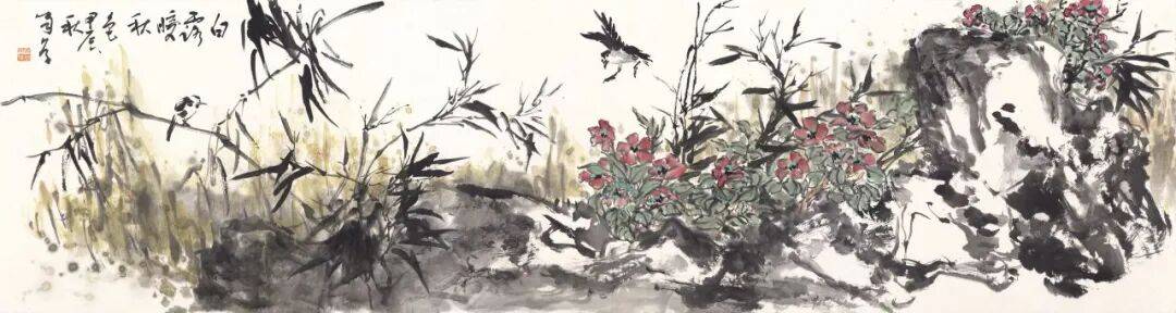 《白霭暖秋》纸本水墨48×180cm