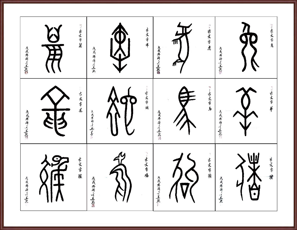 金字甲骨文十二生肖69X68mX12(孤品)。