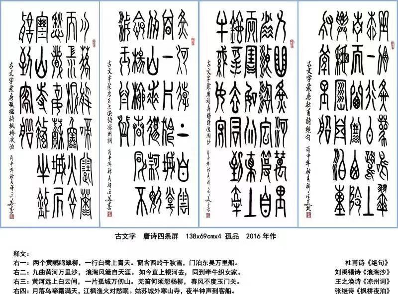 楷书:唐诗四条屏276X138Cm(孤品)。