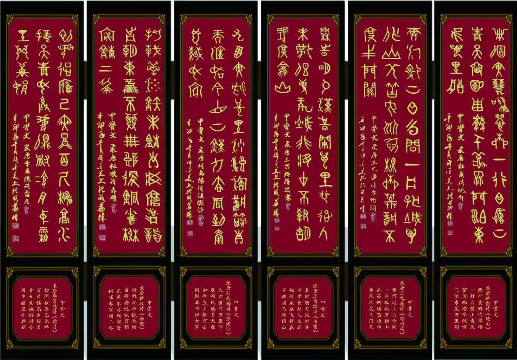 甲骨文:《金字唐诗六条屏》9x9x6cm(孤品)。作为国礼由国家领导人赠送给外国元首。