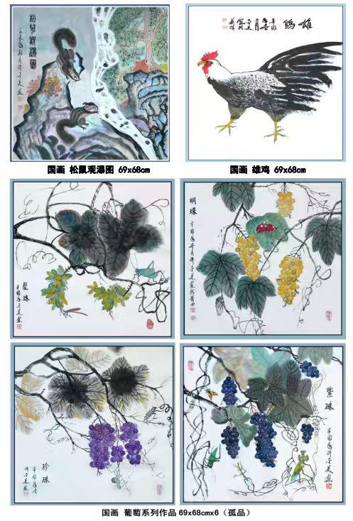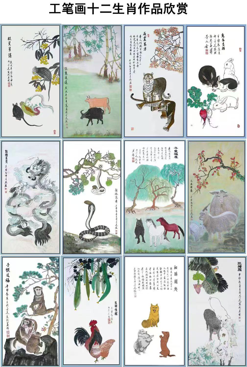 工笔画:动物十二生肖138cmx69cmx12(孤品)。雕制在玉石上作为国礼赠送给外国领导人。2024年,荣获首届国粹文化金马奖。。