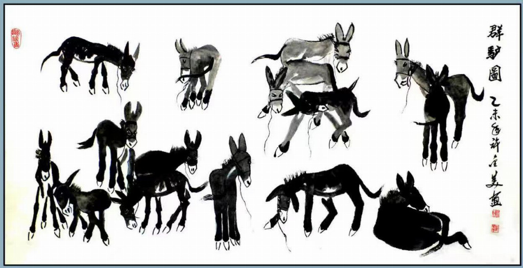 水墨画:群驴图180x97cm(孤品)。在书画报刊发表6次。