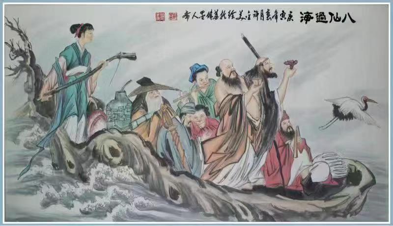 国画:八仙过海180cmx97cm(孤品)。由江西景德瓷厂烧制在瓷瓶上,作为国礼由国家领导人赠送外国来宾。