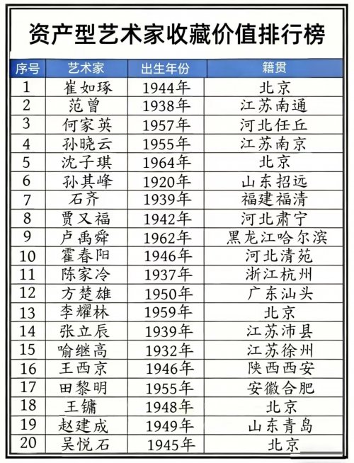 为此,隆重推出【资产型艺术家收藏价值排行榜】。