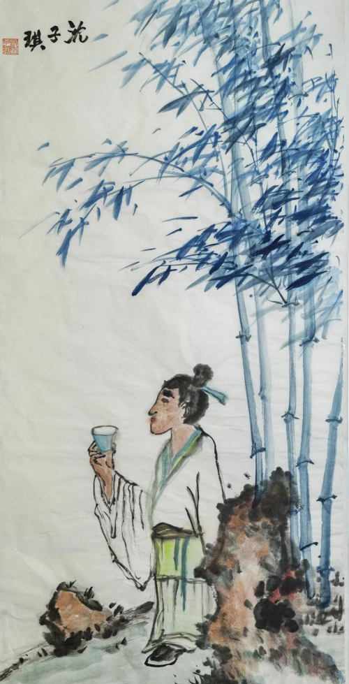 擅长写竹,尤爱竹之品格,独创"一叶式”技法,并提出“竹有九德”:高节、虚心、宽怀、坦荡、柔韧、潇洒、灵秀、清气、优美。