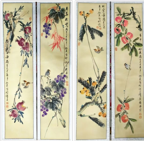 国画花鸟《果实4幅》