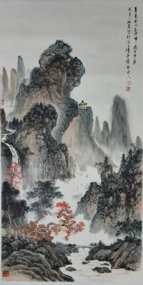 山水画《湖光山色共争秋》