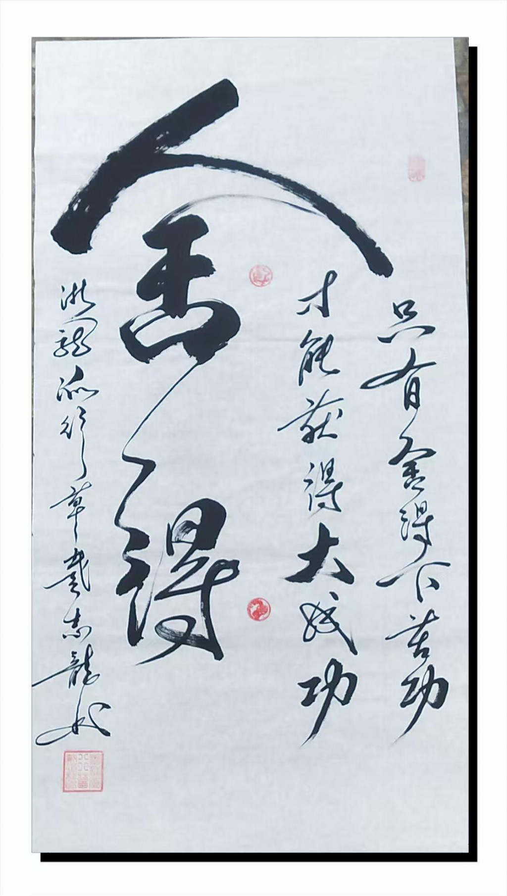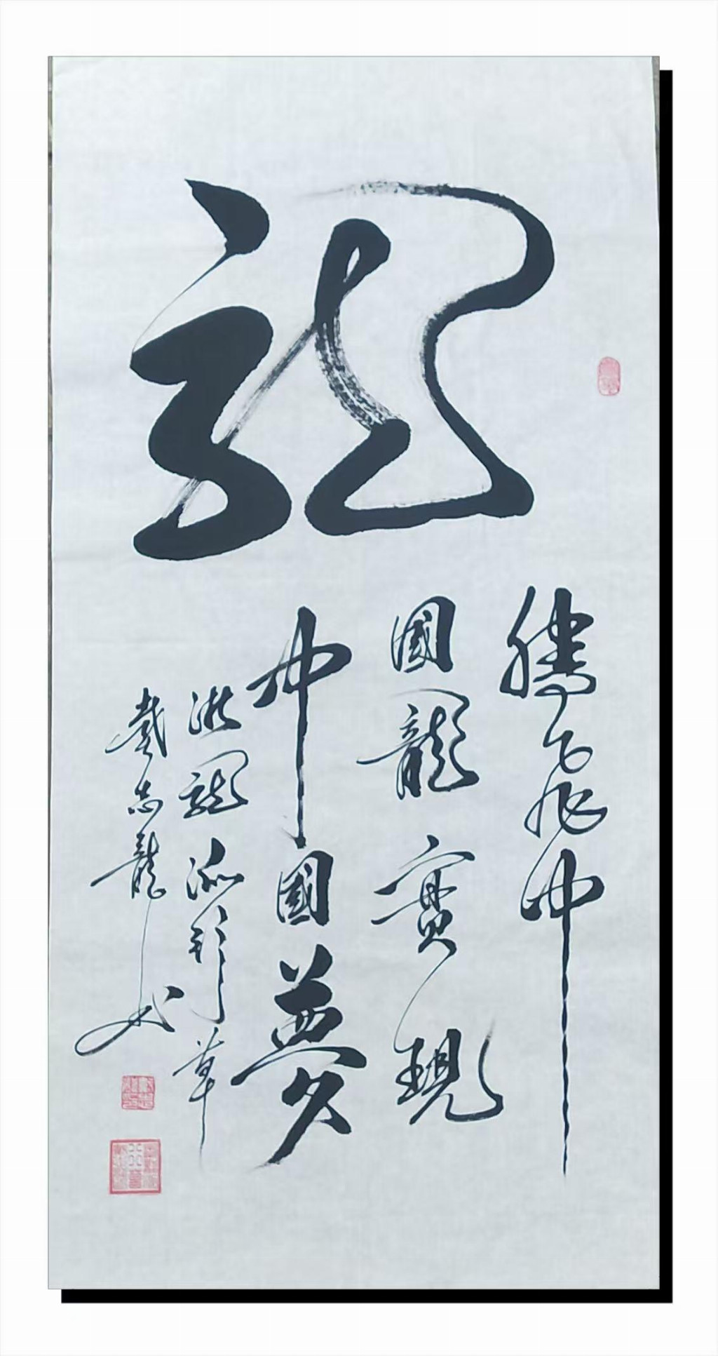 戴志龙,男,1953 年出生,浙江临安人。1973 年参军,1976年入 党,1978 年退伍后教书,1985 年至 2010 年任乡镇企业厂长、党支部书记、市级优秀共产党员。现为当代著名书画艺术名家、华人艺术大师、人民书画家、国家一级书法师、中国艺术馆名誉馆长、中国书法家协会理事、全国名人书画界联合会委员、中国书画家协会会员、中国硬笔书法协会会员。本人一直追求书法艺术,自成书法流派为“浙龙派行草”。曾荣获全国书法大赛获奖证书 82 次,其中获金奖 58 次,获特等奖和一等奖各2次。